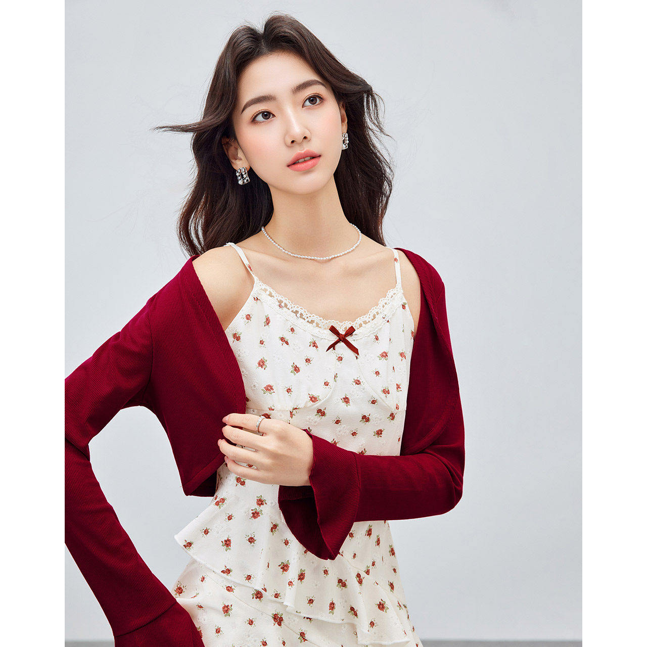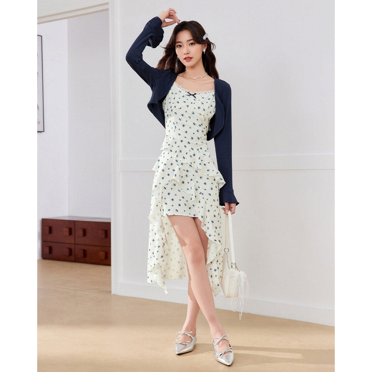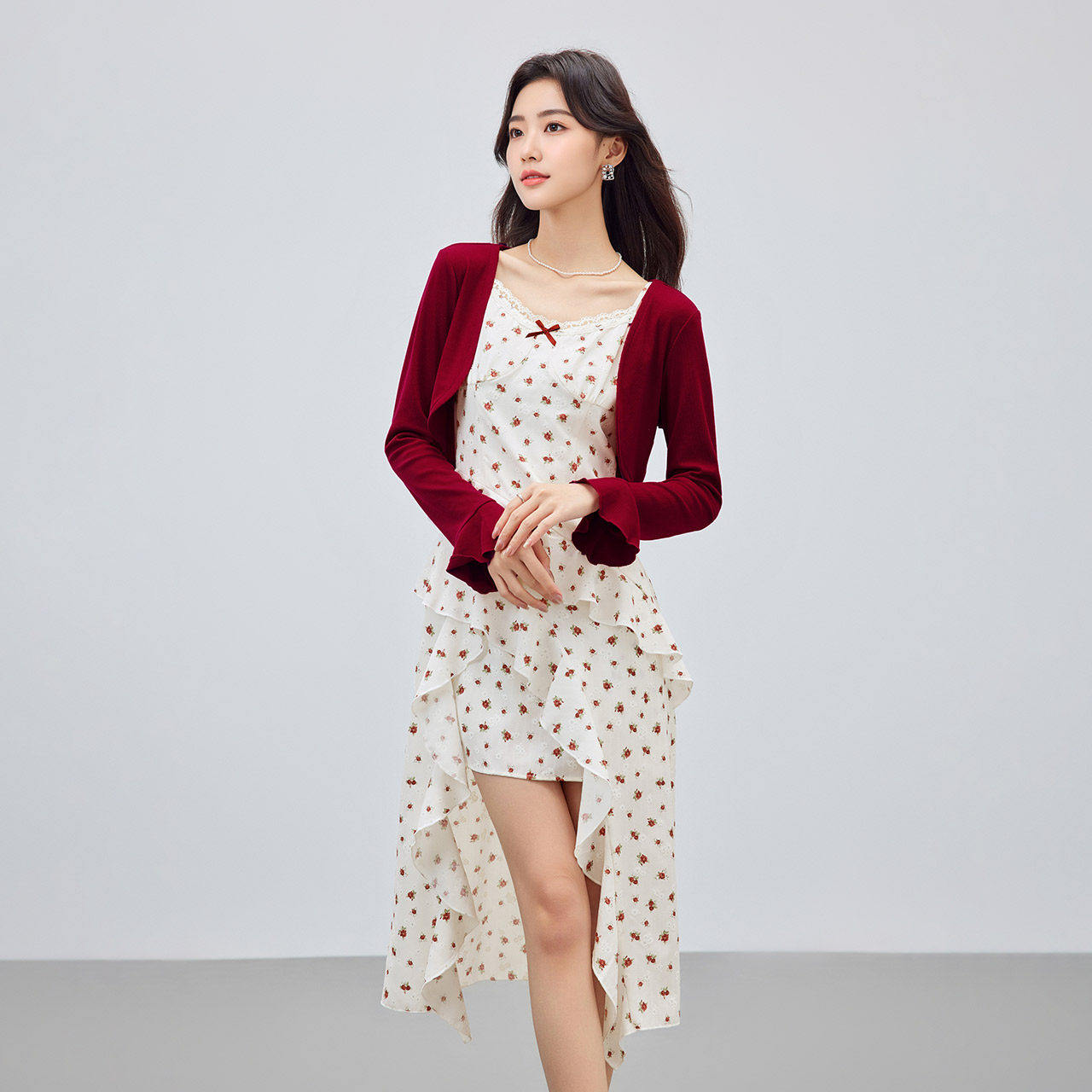 IEF/爱依服裙子2026春夏新款法式浪漫淑女碎花设计感里外套长裙