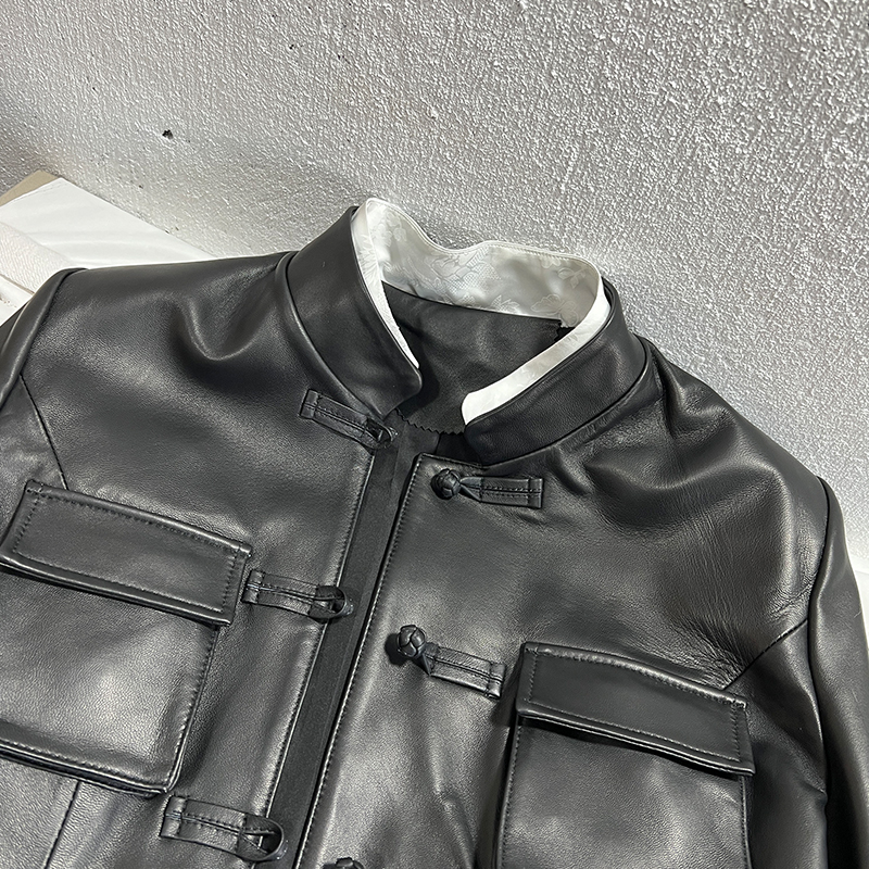 欧货 新中式绵羊皮真皮外套气质减龄时尚收腰显瘦中长款皮衣女