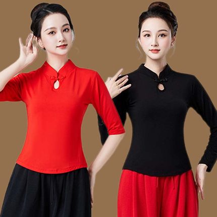 古典舞蹈服装女古风盘扣跳舞打底衫广场舞衣服民族风团体演出服女