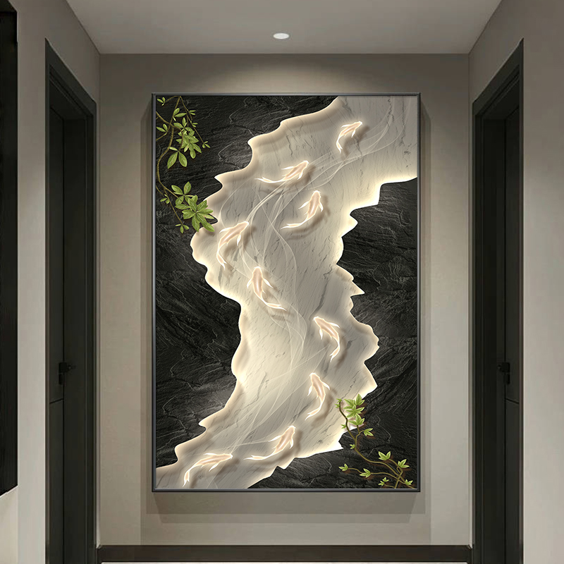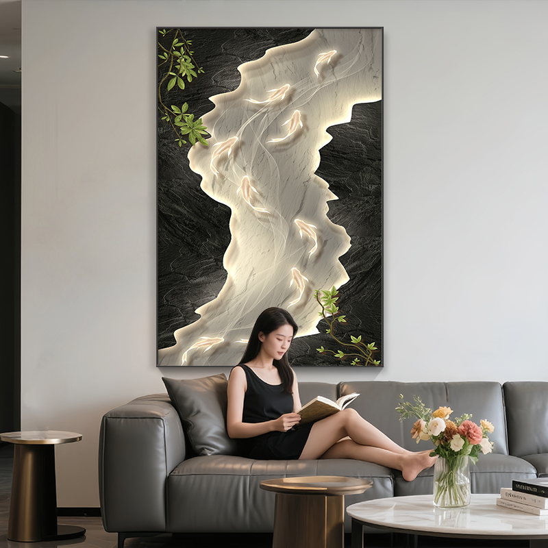 简约现代客厅沙发背景墙装饰画高级感九鱼图抽象艺术挂画玄关壁画