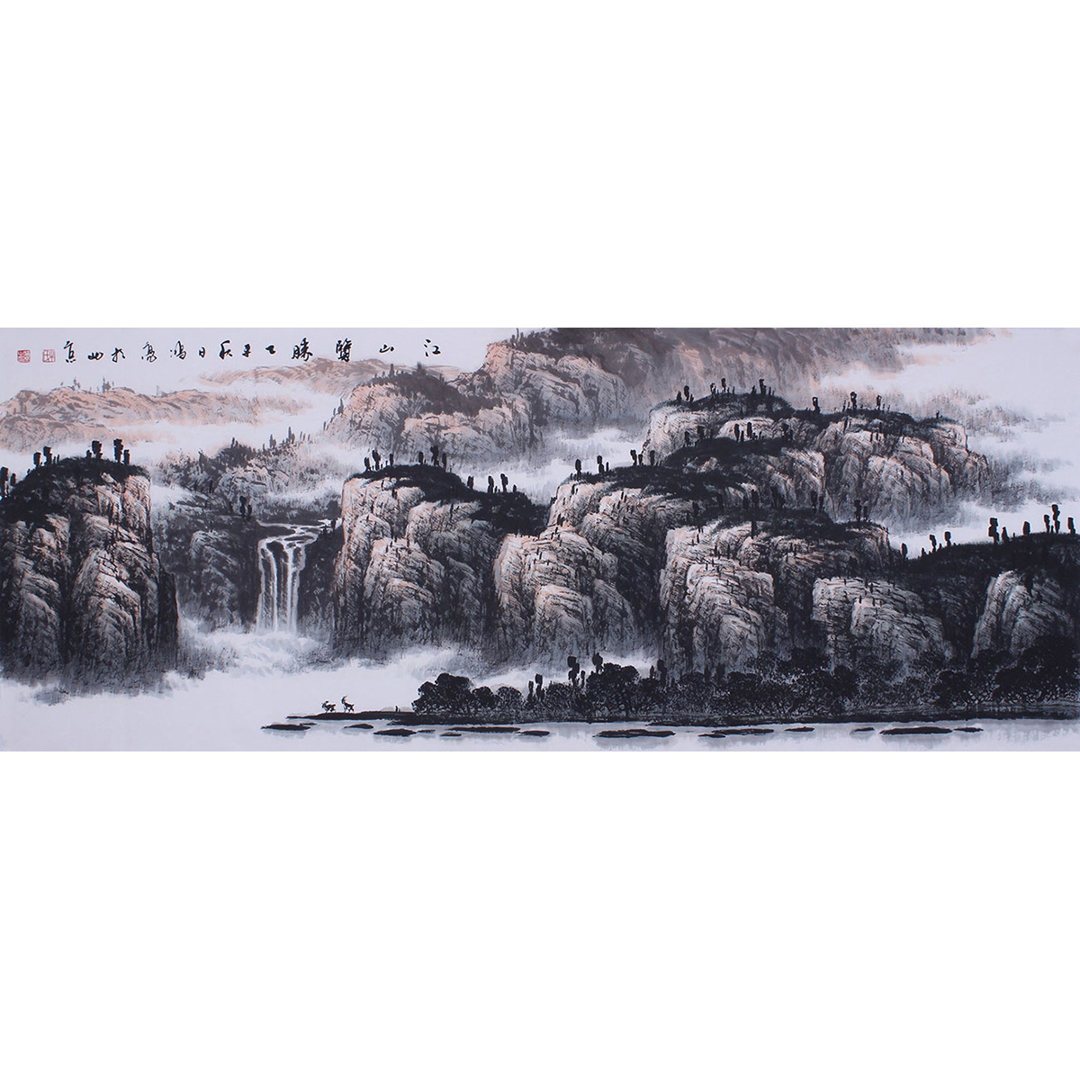 精品办公室水墨画六尺书房客厅山水画纯手绘横幅原稿装饰画 国画