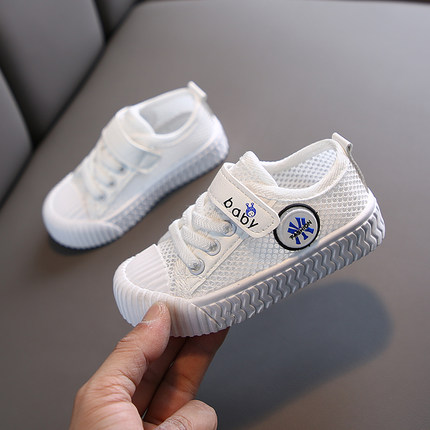 夏季儿童帆布鞋男童板鞋女童小白鞋镂空运动鞋透气网鞋宝宝饼干鞋