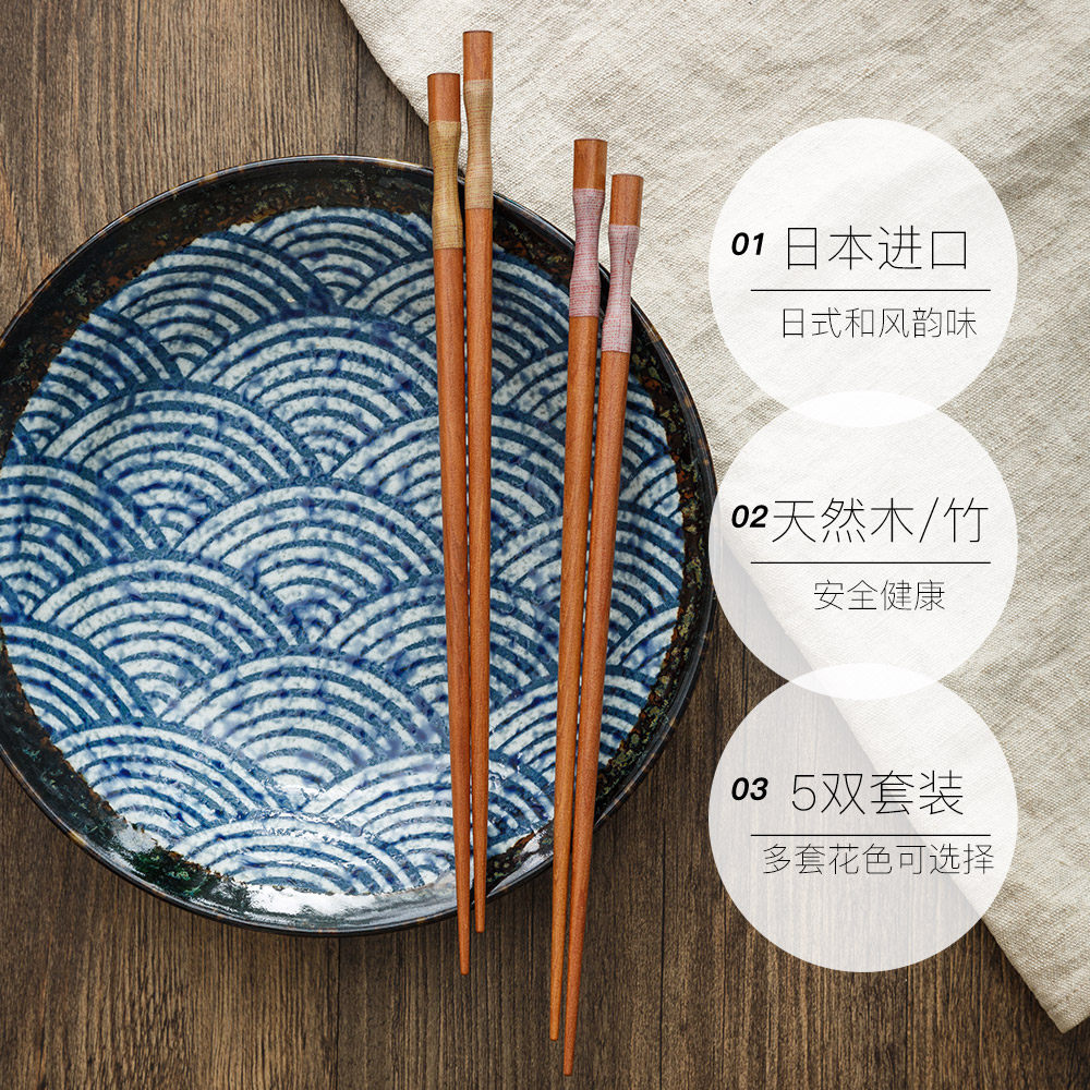 【自营】日本原装进口筷子 家用高档新款防滑日式尖头木筷竹筷子