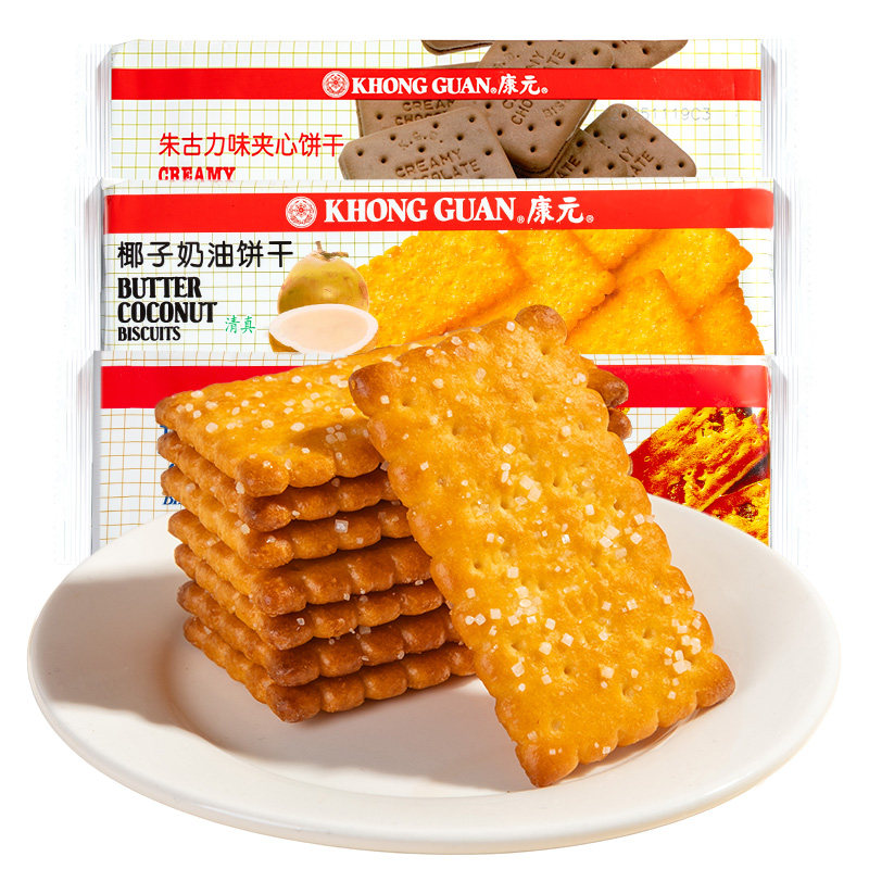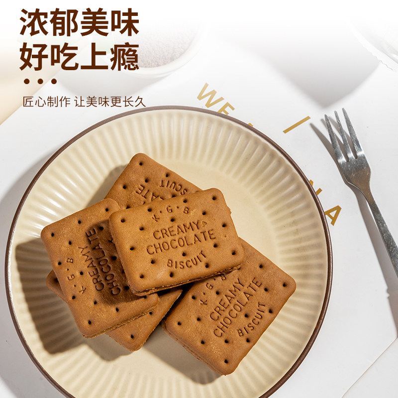 康元椰子奶油酥性饼干朱古力味夹心提子饼干200g袋装解馋充饥零食