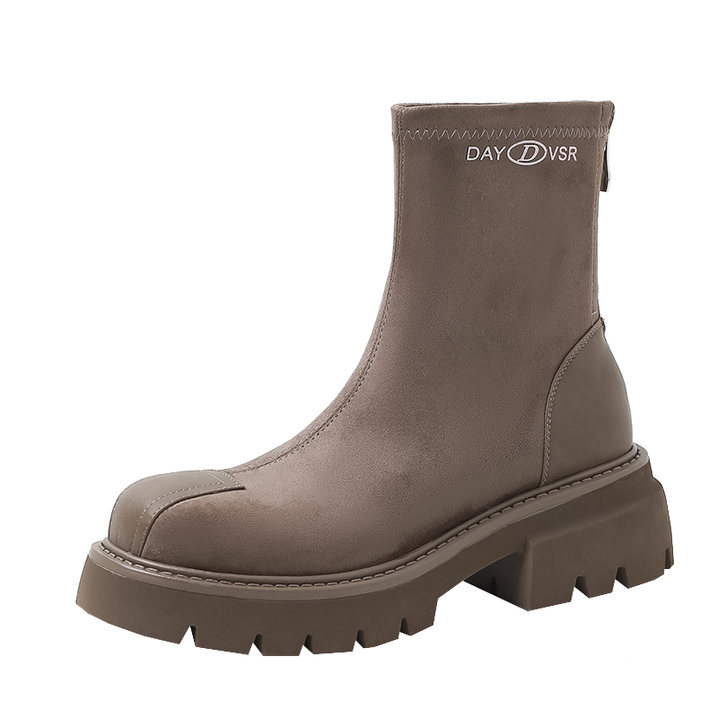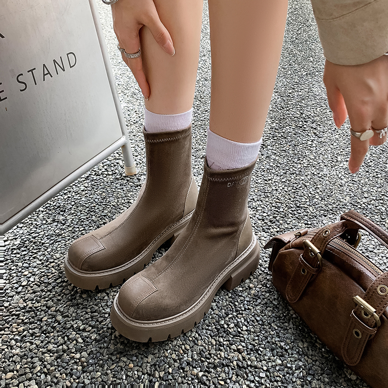 弹力瘦瘦靴粗跟厚底增高马丁靴