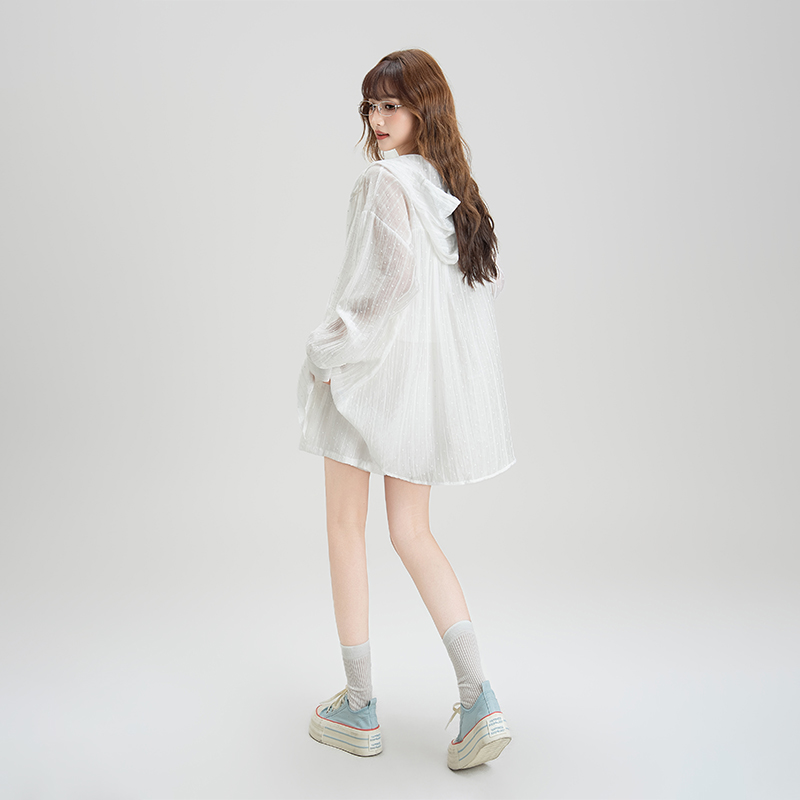 白色波点连帽肌理感衬衫女2025