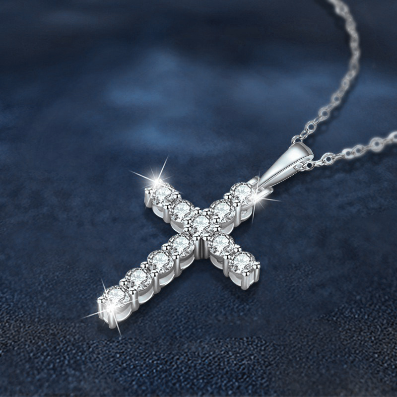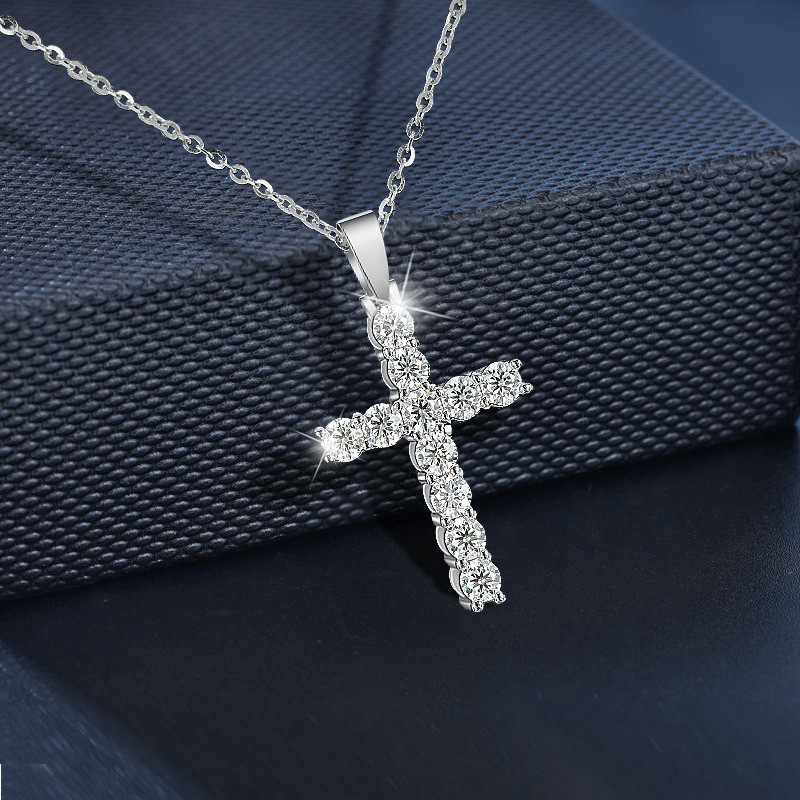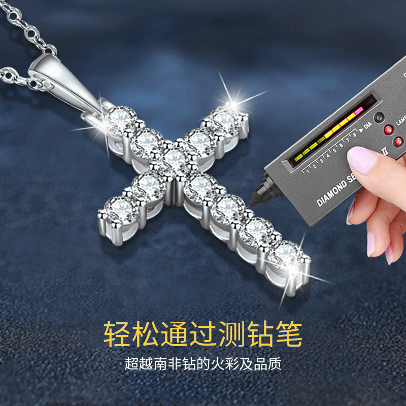 日本品质莫桑石925纯银十字架项链吊坠女欧美饰品锁骨链简约百搭