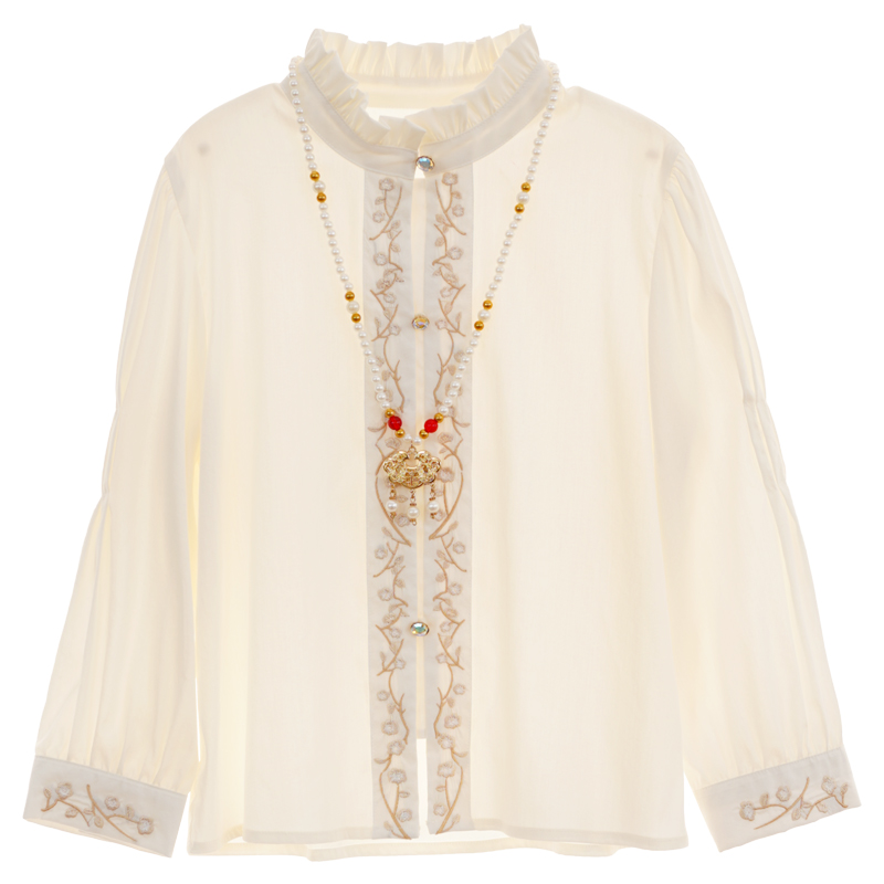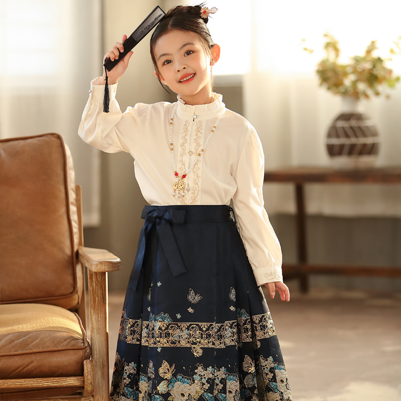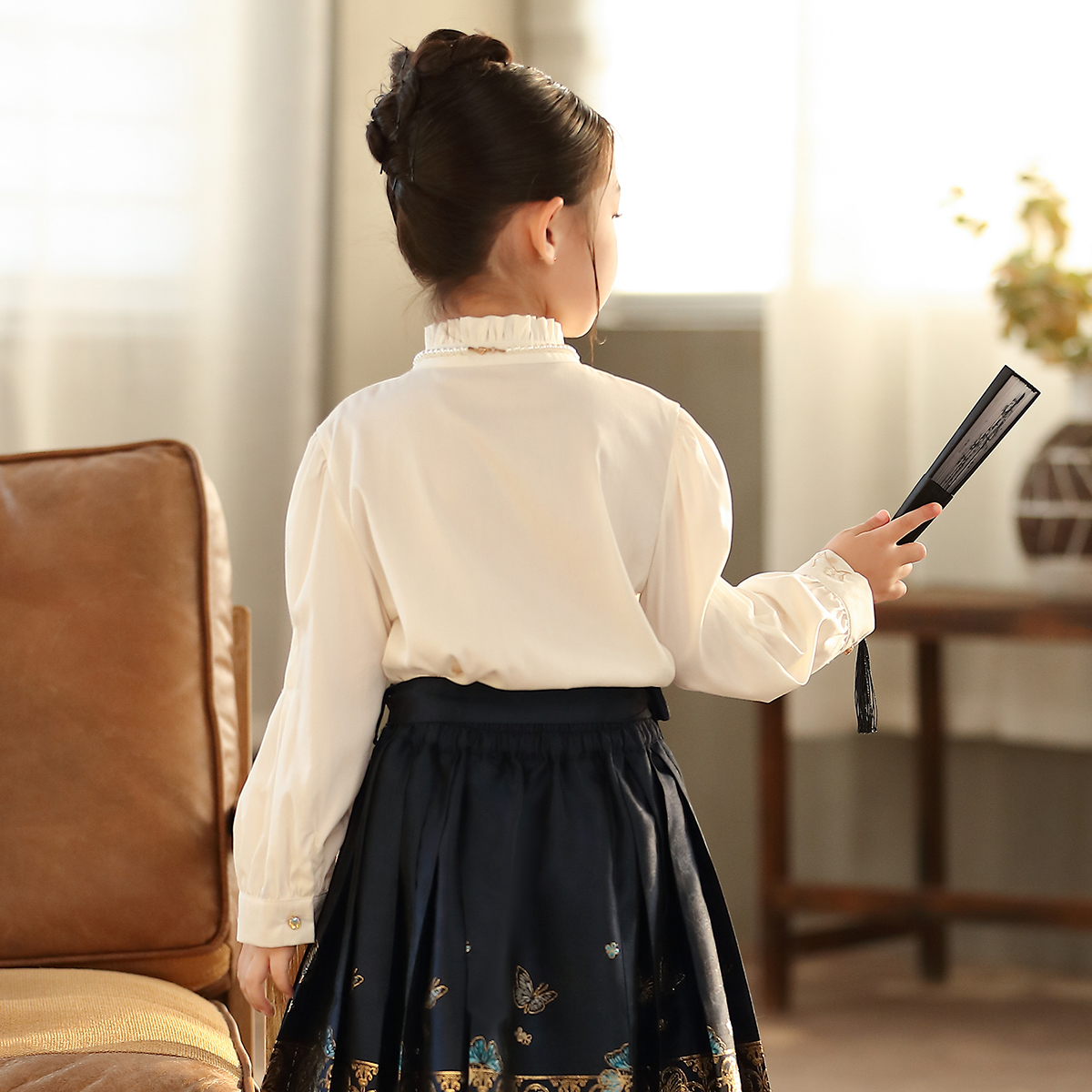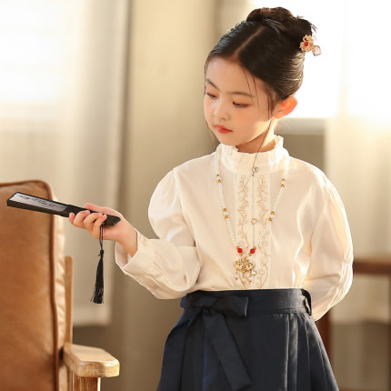 女童长袖衬衫2025秋季新款明制汉服改良版国风汉元素白色上衣衬衫