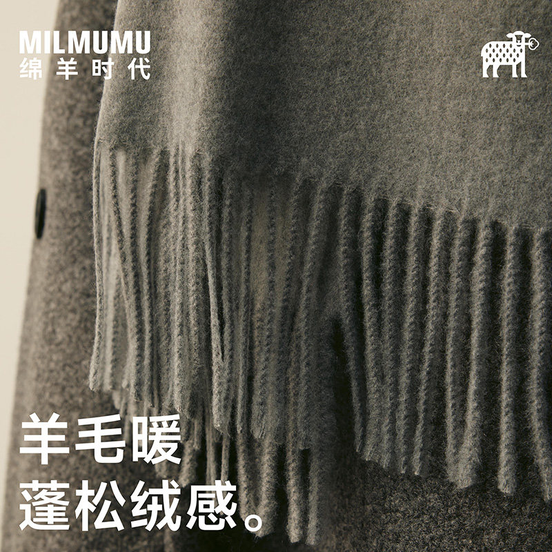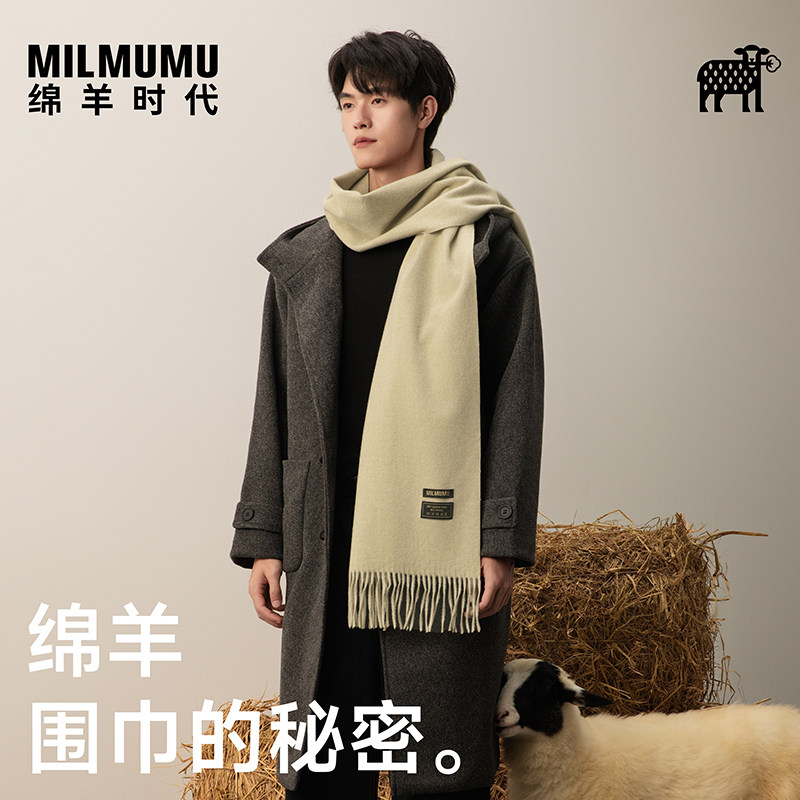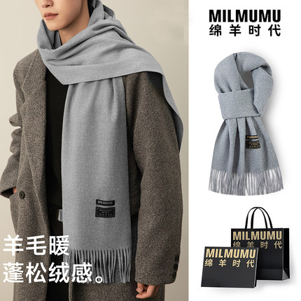 milmumu羊毛围巾男女2025新款秋冬高中大学生生日礼物纯色绒围脖