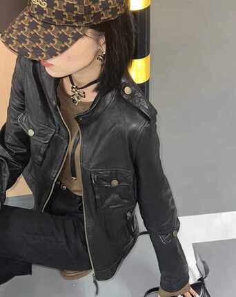 2025秋冬真皮皮衣女绵羊皮植鞣皮油蜡皮夹克外套时尚休闲机车服短