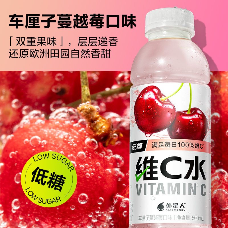 【魏晨同款】外星人维C水车厘子蔓越莓柠檬低糖VC果汁500mL*15瓶