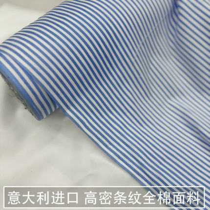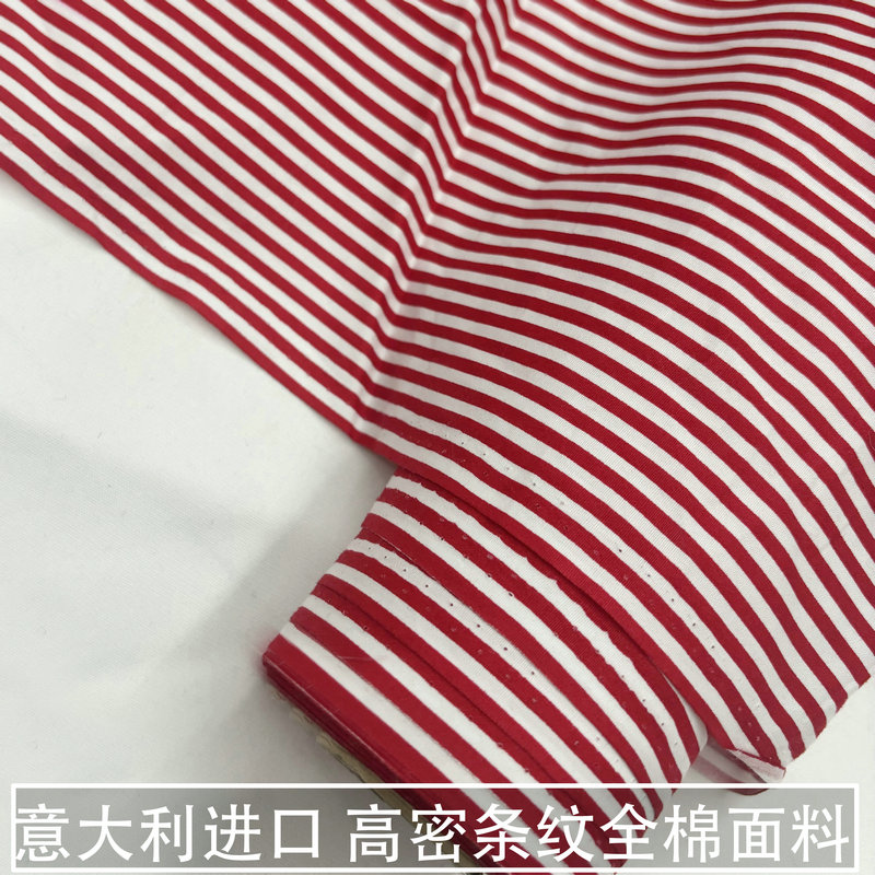 意大利棉布进口蓝白条纹棉府绸面料设计师衬衫连衣裙服装布料红色