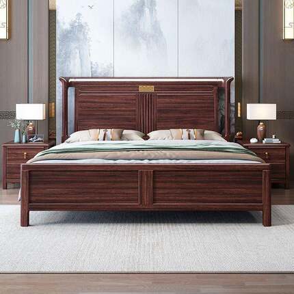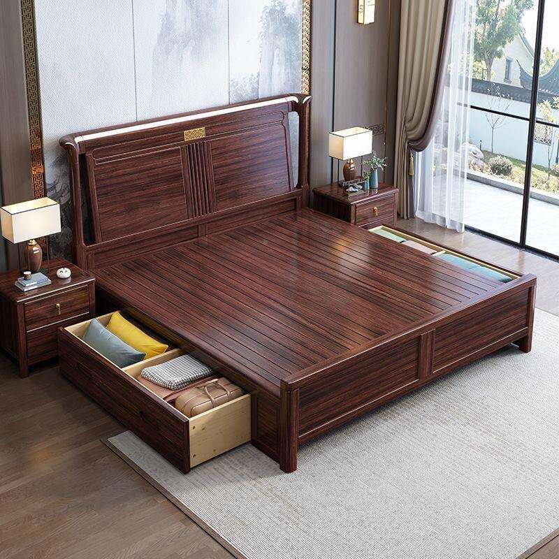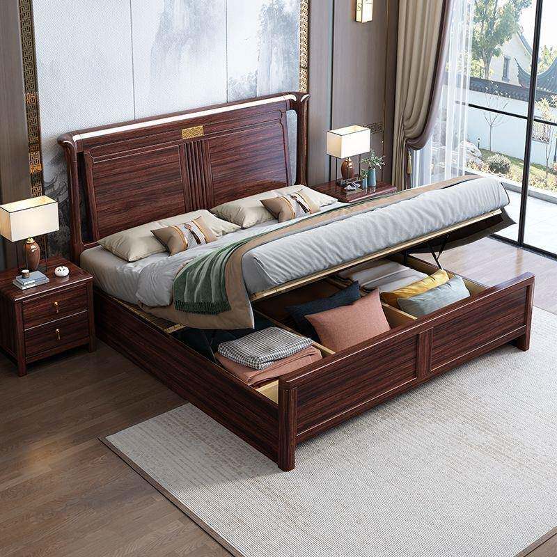 新中式乌.金木实木床卧室1.8米双人卧20米气高箱储物抽屉主压9812