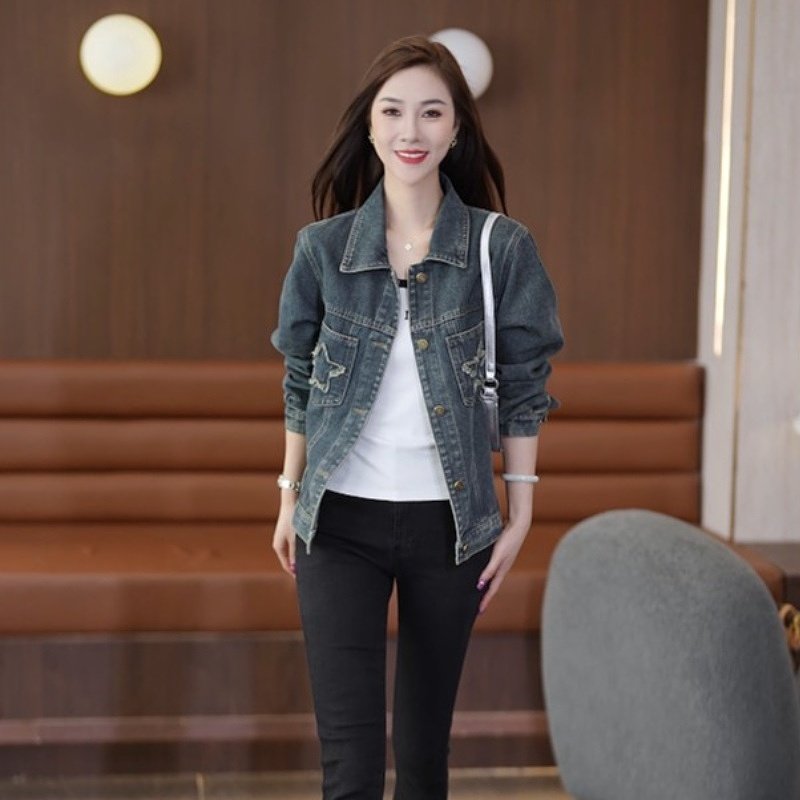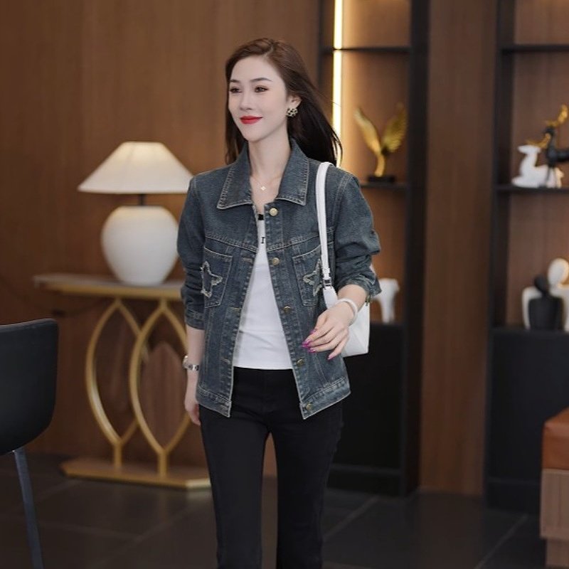 韩版宽松复古秋季新款女外套休闲时尚洋气显瘦牛仔女士上衣女外套