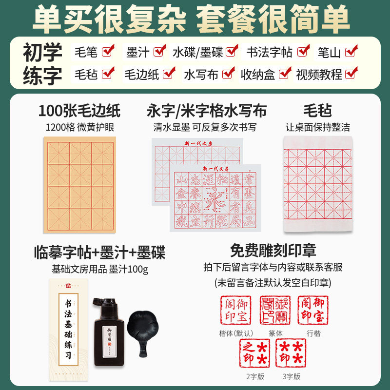 毛笔书法专用毛笔字初学者入门套装小学生三年级文房四宝笔墨纸砚一整套软笔练字工具收纳盒兼毫狼毫小楷成人