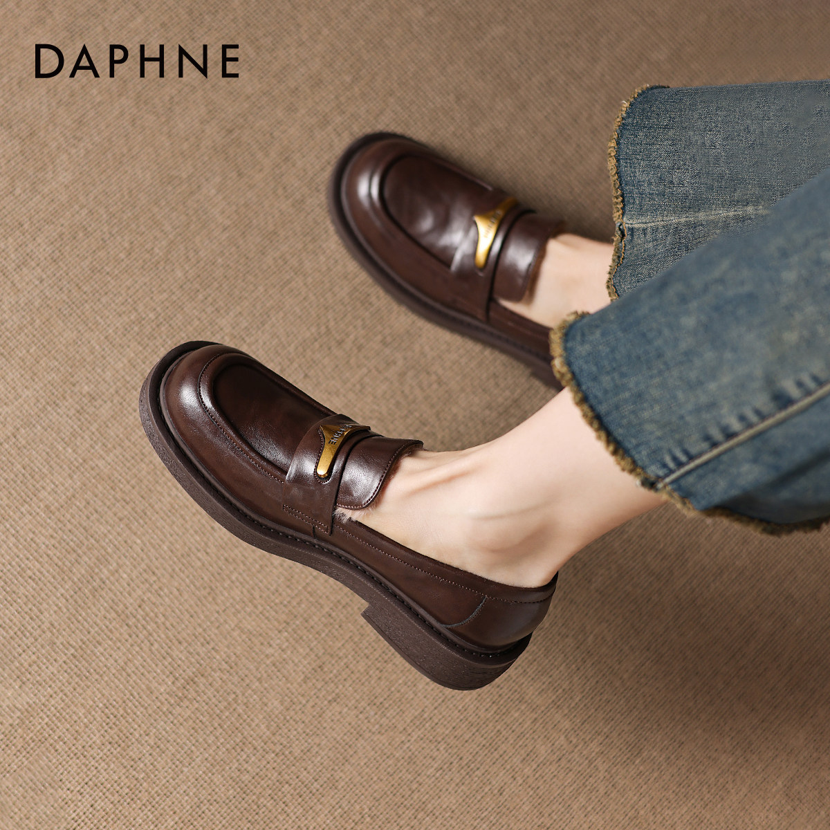 达芙妮加绒乐福鞋女厚底英伦风