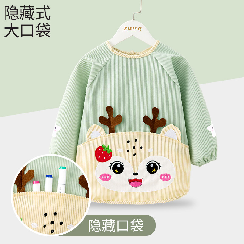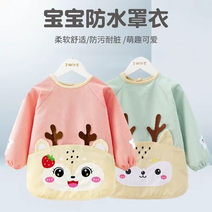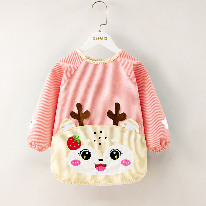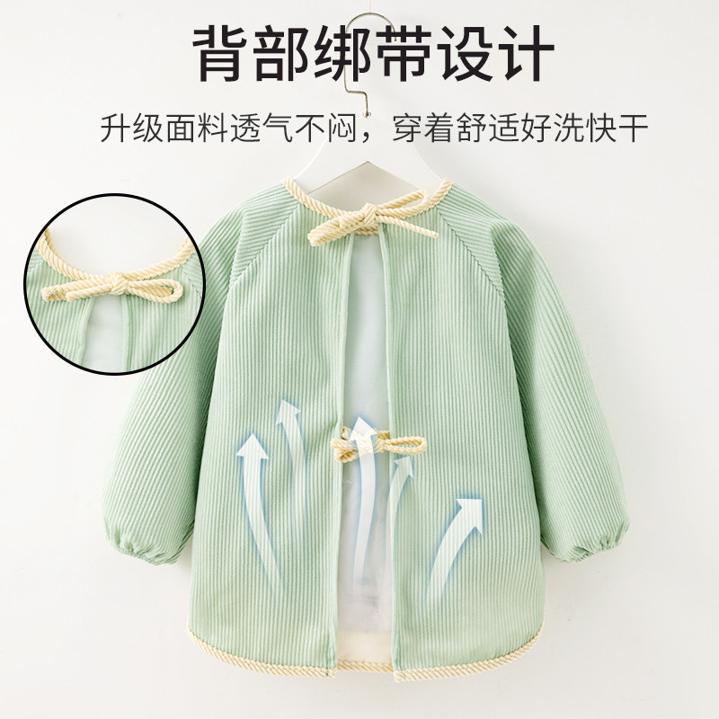 秋冬宝宝罩衣女宝灯芯绒饭兜儿童围裙婴儿防水防脏吃饭围兜反穿衣