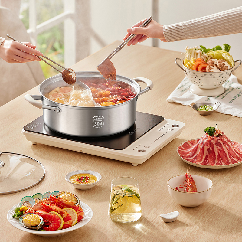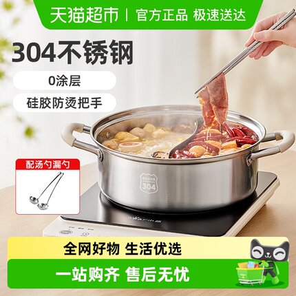 小熊鸳鸯锅火锅电磁炉专用304不锈钢锅汤锅火锅盆锅具家用清汤锅