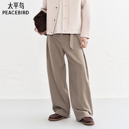太平鸟男装 宽松休闲裤男直筒西裤磨毛腰带设计阔腿裤男潮