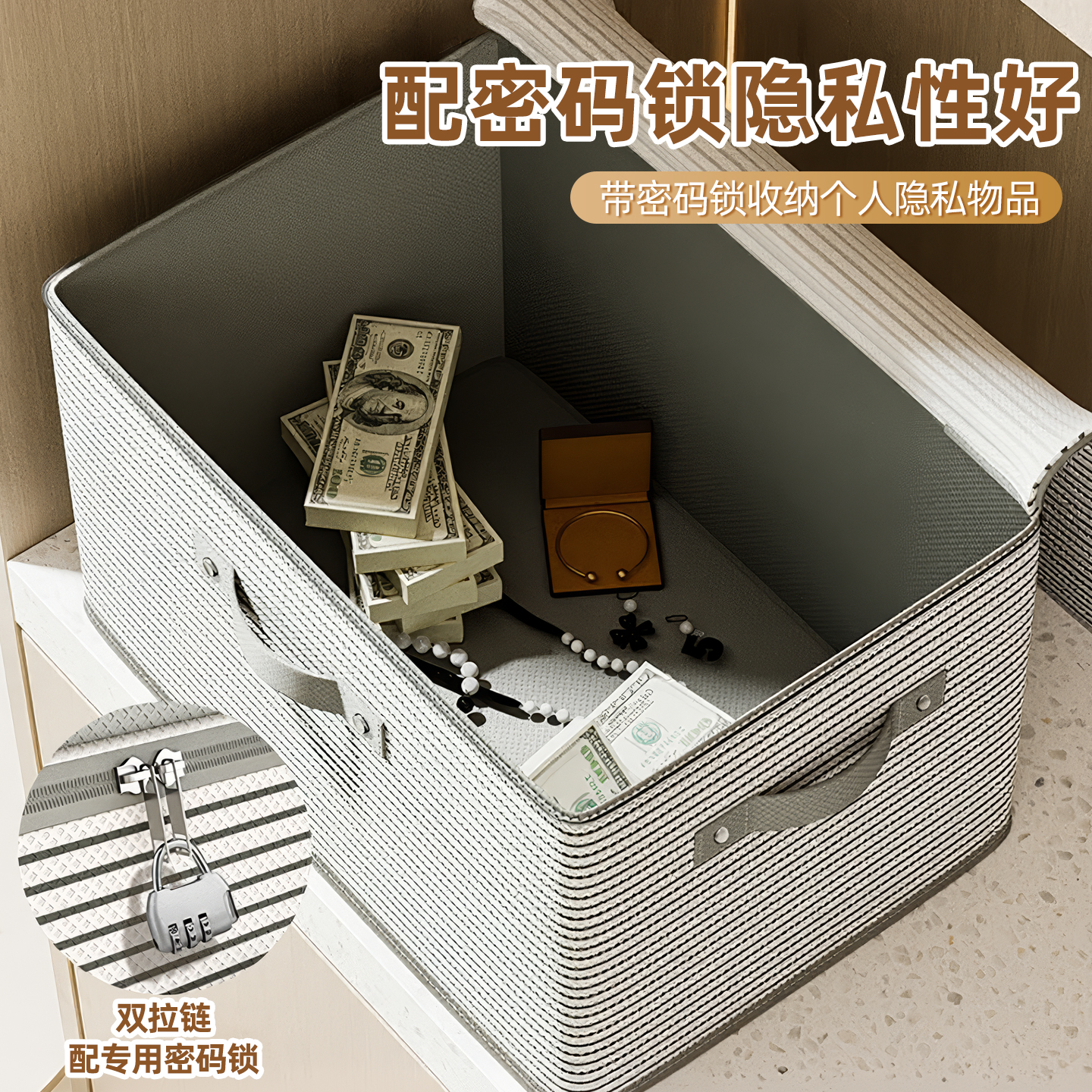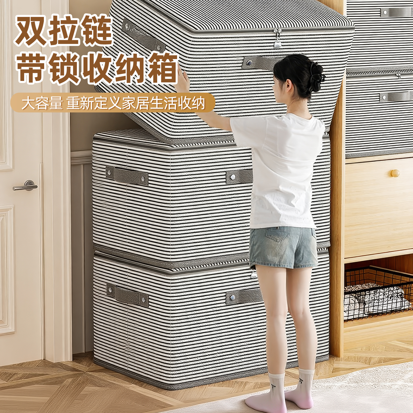 带锁收纳箱家用衣柜装衣服被子玩具整理箱盒可折叠密码储物箱神器