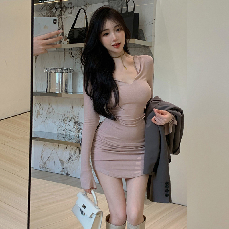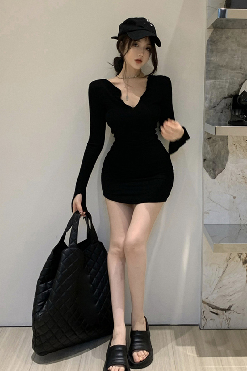 辣妹V领包臀裙纯欲性感气质夜场短裙显身材裙子紧身连衣裙女秋季