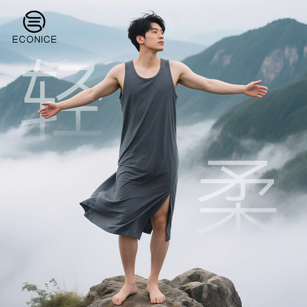 男士睡裙2026新款夏季薄浴袍丝滑冰丝大码宽松背心睡袍莫代尔睡衣