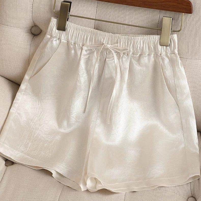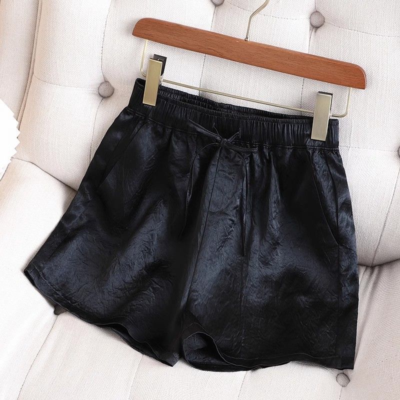 三伏天可穿冰感醋酸黑色短裤女夏季薄款轻奢高级感显瘦阔腿裤热裤