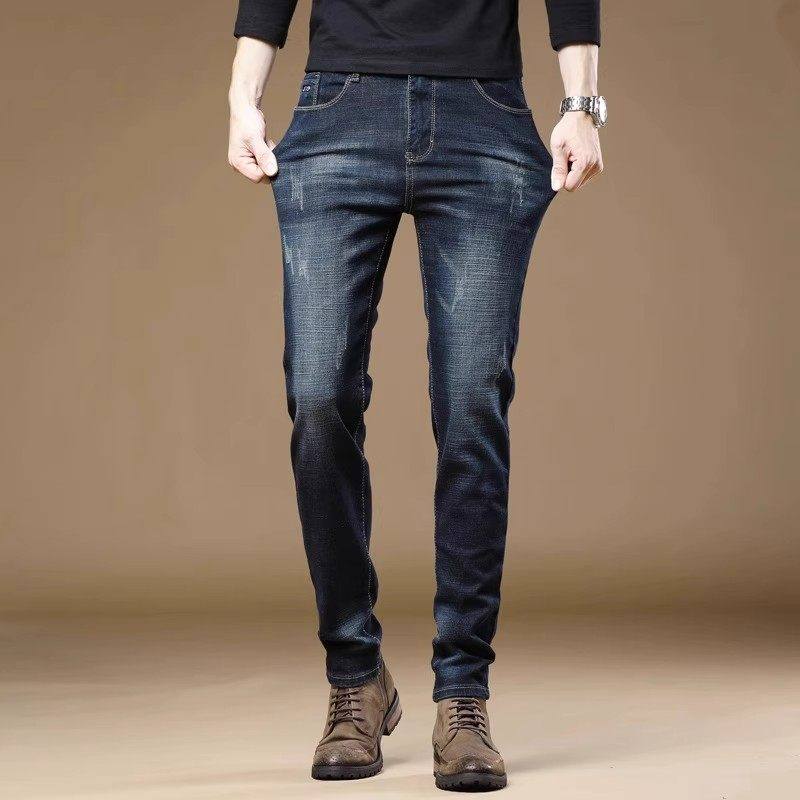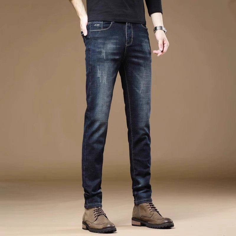 Yishion以纯官方时尚正品加绒加厚牛仔裤男士秋冬新款修身直筒休