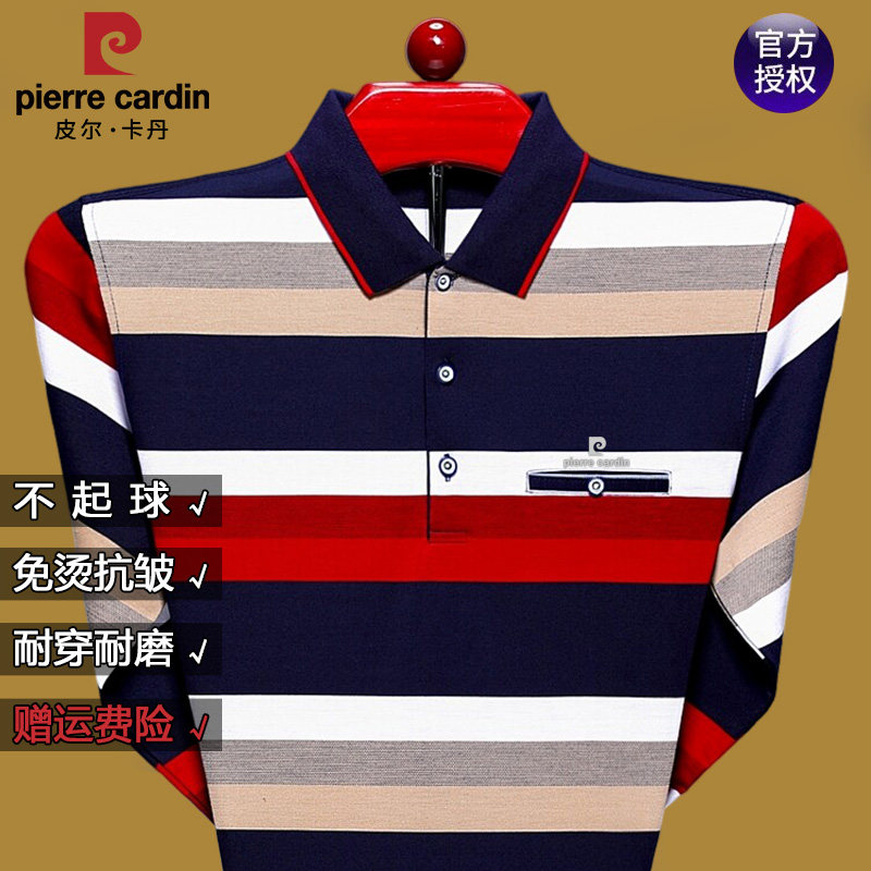 条纹皮尔卡丹翻领长袖棉质中老年
