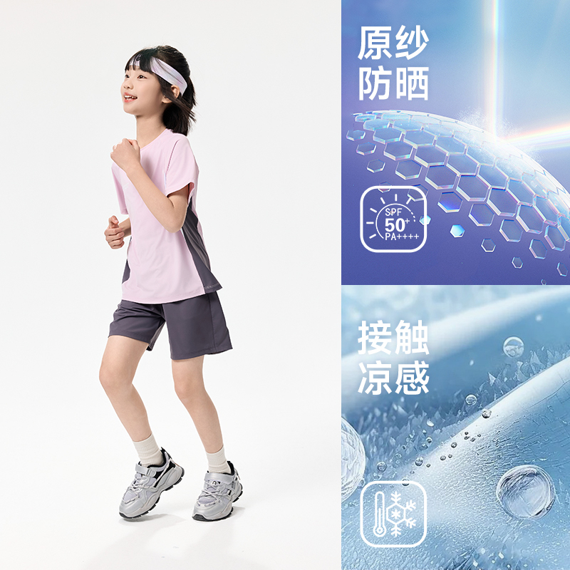 ebaer儿童凉感运动套装2025夏装新款男童防晒T恤女童轻薄短裤洋气