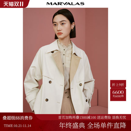 曼德诗短款风衣2025秋季新款纯色时尚气质西装领宽松短外套