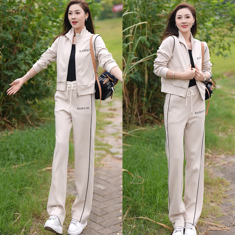 休闲运动服套装女时尚高级感外套阔腿裤跑步2025开春季新款三件套