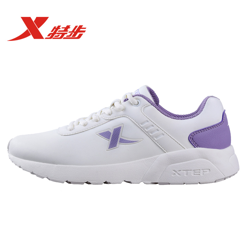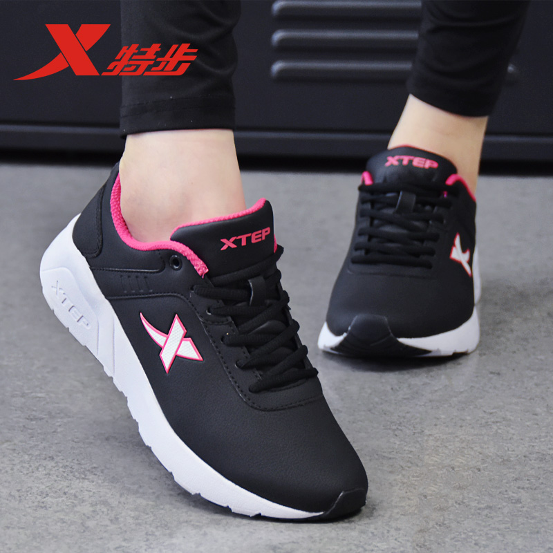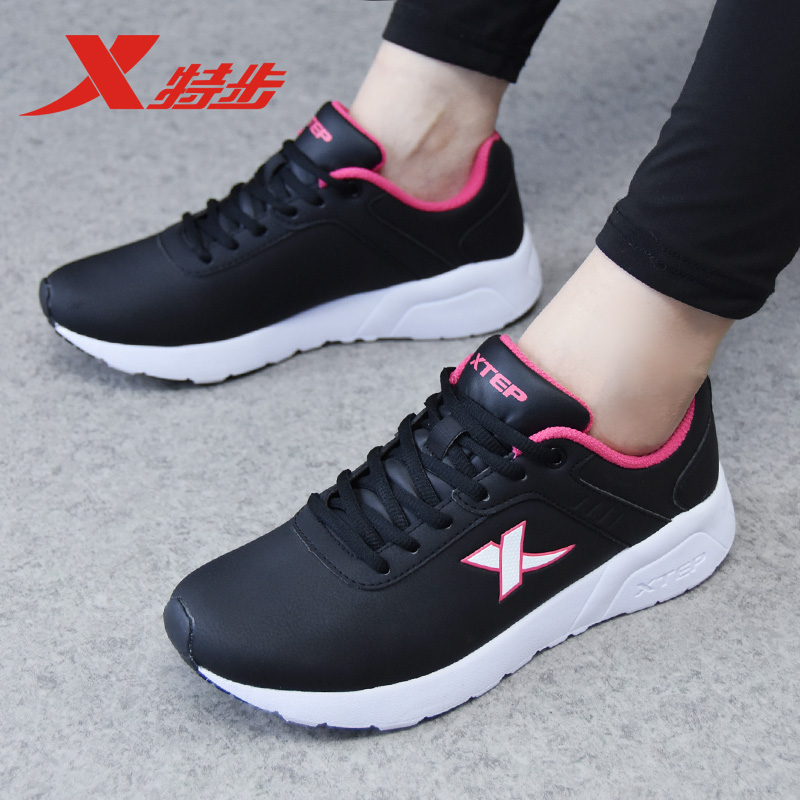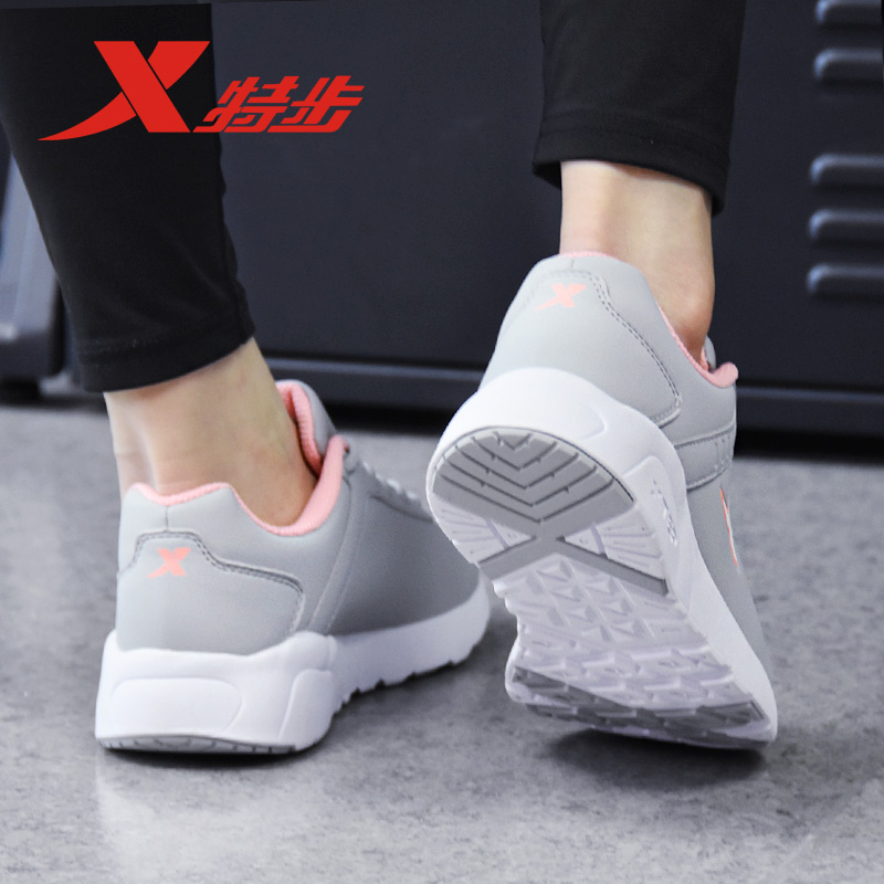 特步女鞋正品秋季新款运动鞋女士皮网透气休闲跑步鞋子旅游小白鞋