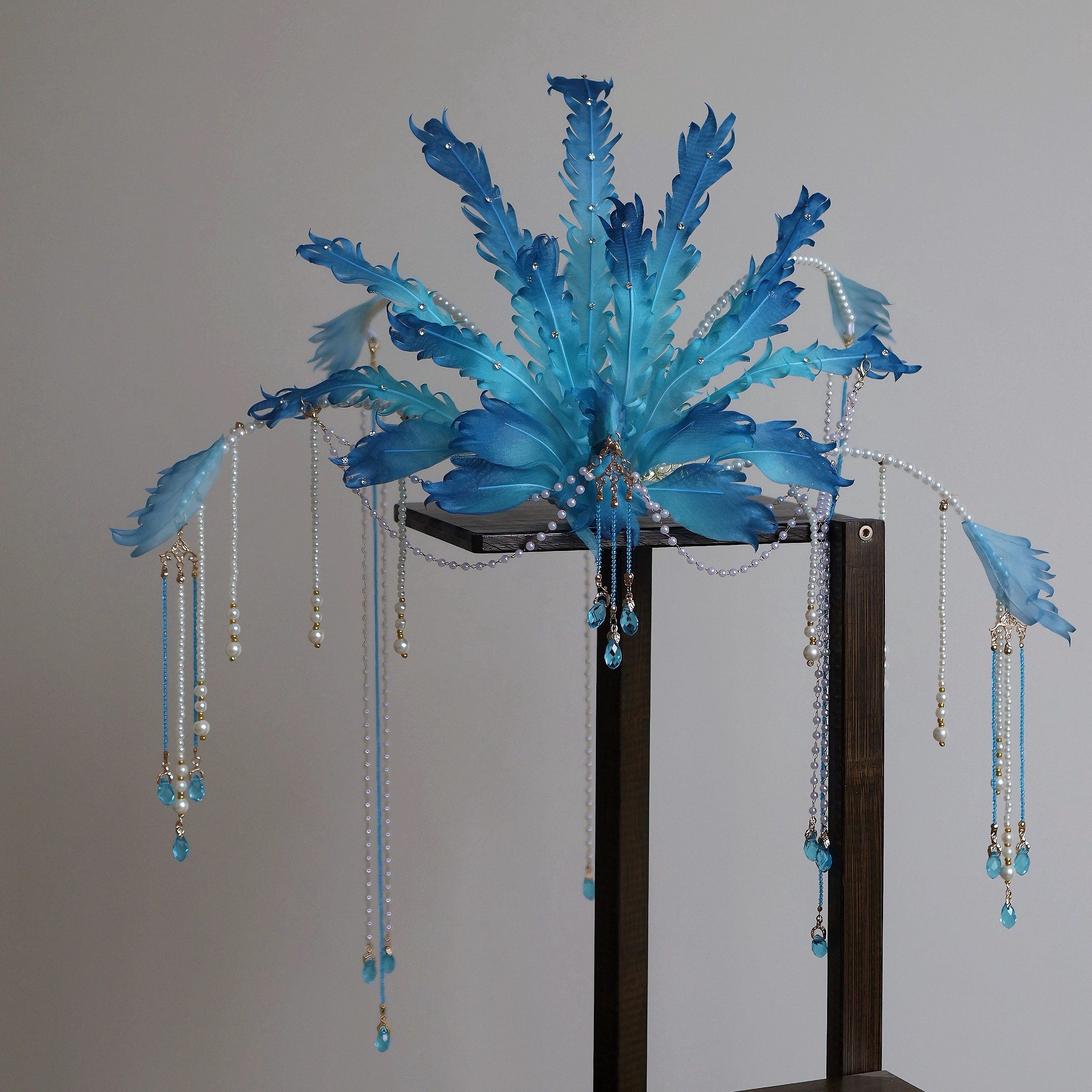 原创 青玄 真丝烫花发冠女儿国国王凤冠发饰仙气正凤重工发饰