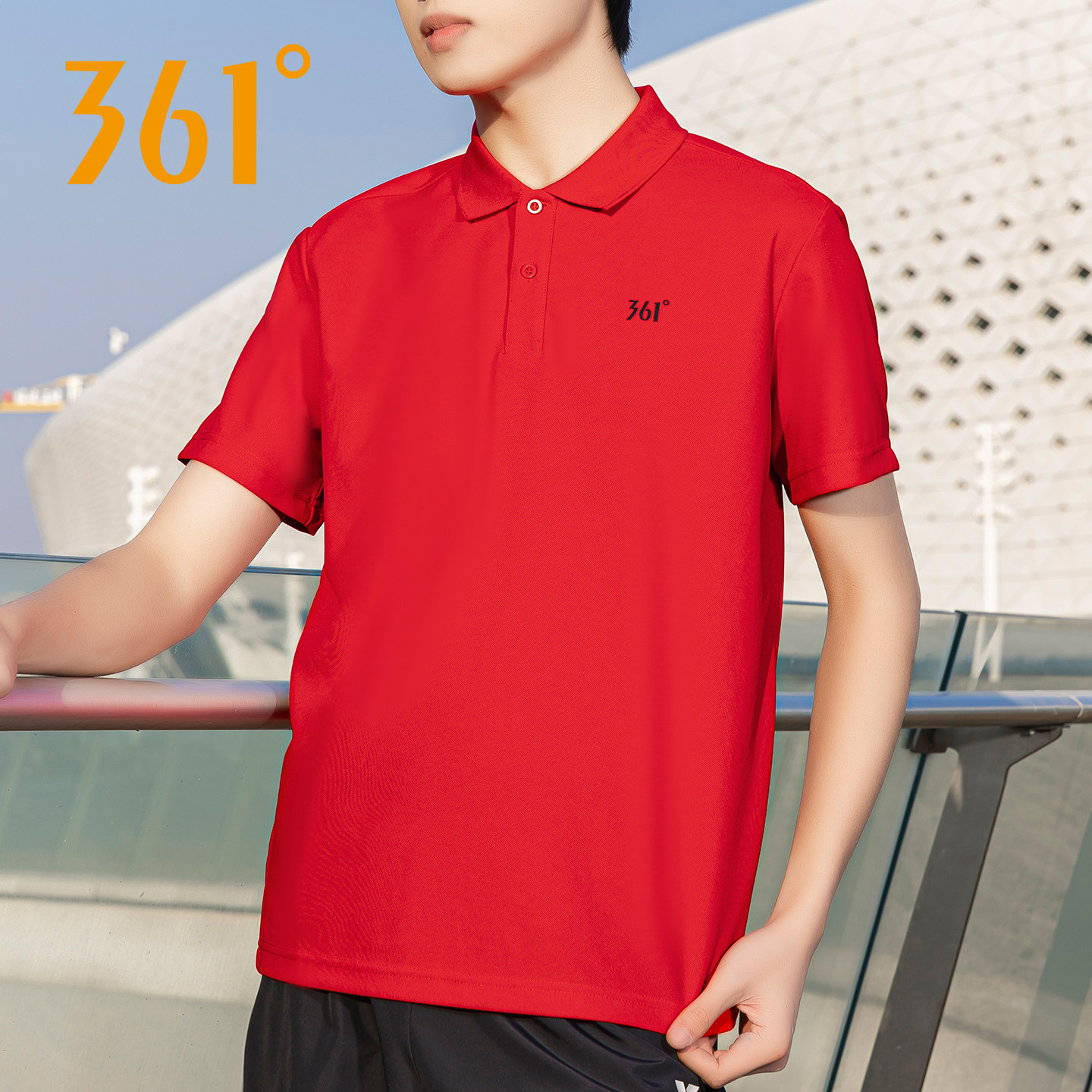 361度红色短袖男速干T恤2026夏季新年春节上衣透气休闲运动polo衫