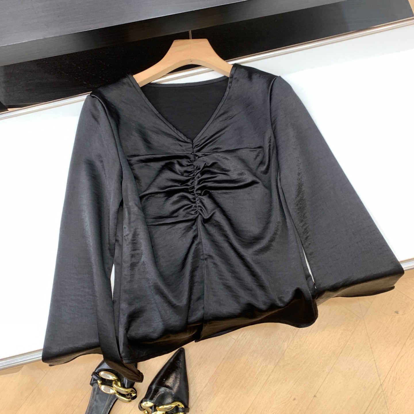 衬衫V领显瘦直筒百搭2025长袖新款秋季法式上衣女 I#14