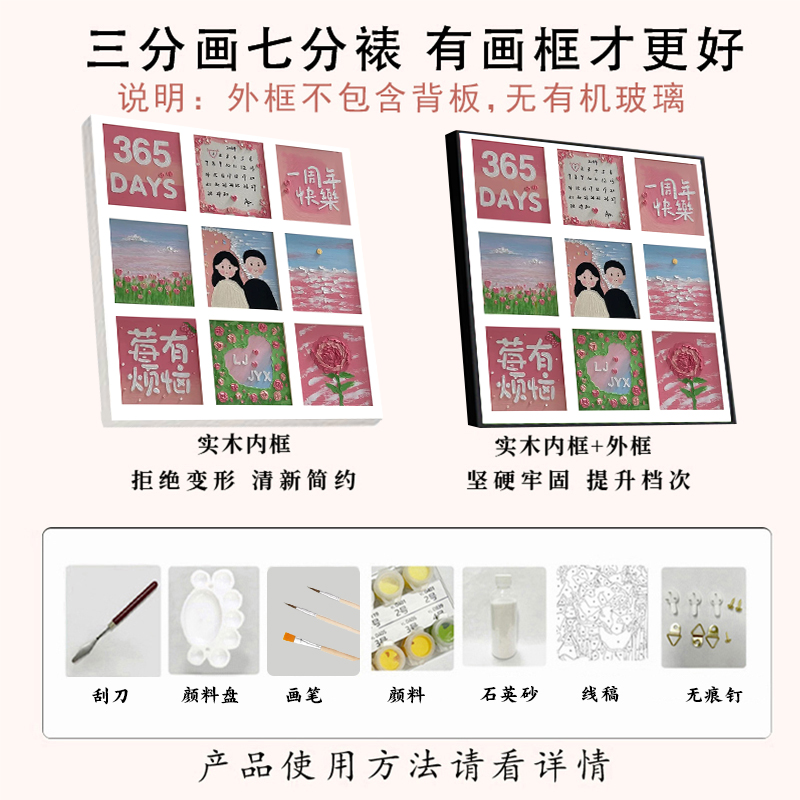 情人节肌理画diy数字油画手绘丙烯石英砂立体填色填充送女友装饰