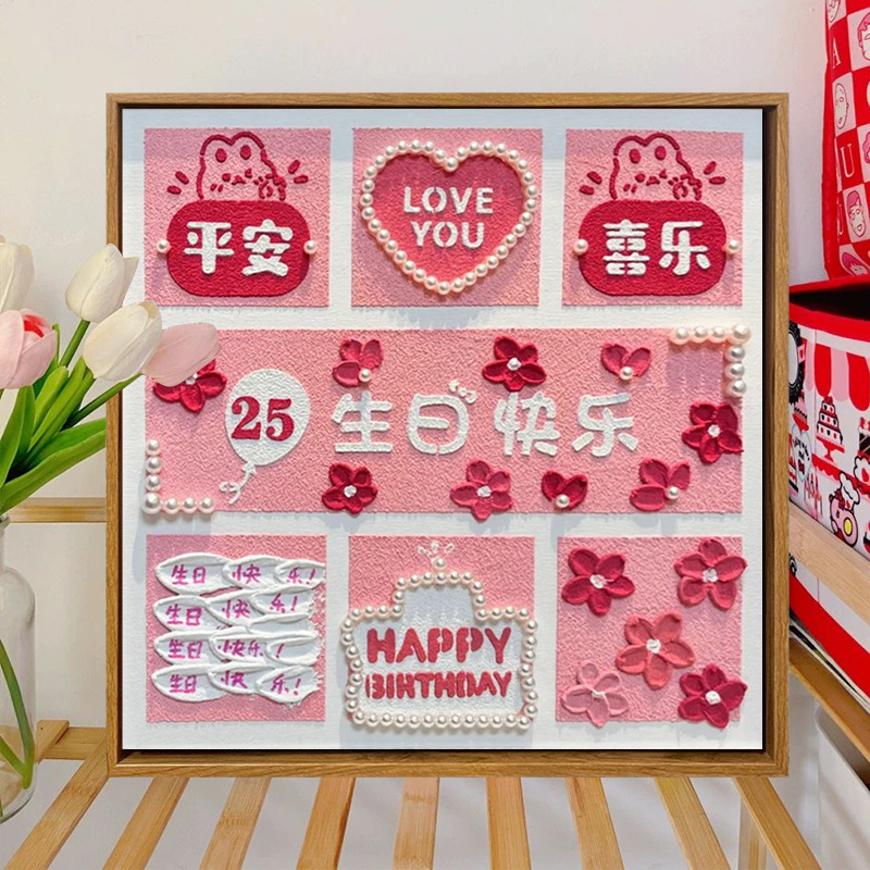 高级感情人节手工礼物肌理摆画