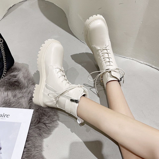 新款马丁靴女中筒显腿细英伦风百搭机车靴厚底侧拉链单靴