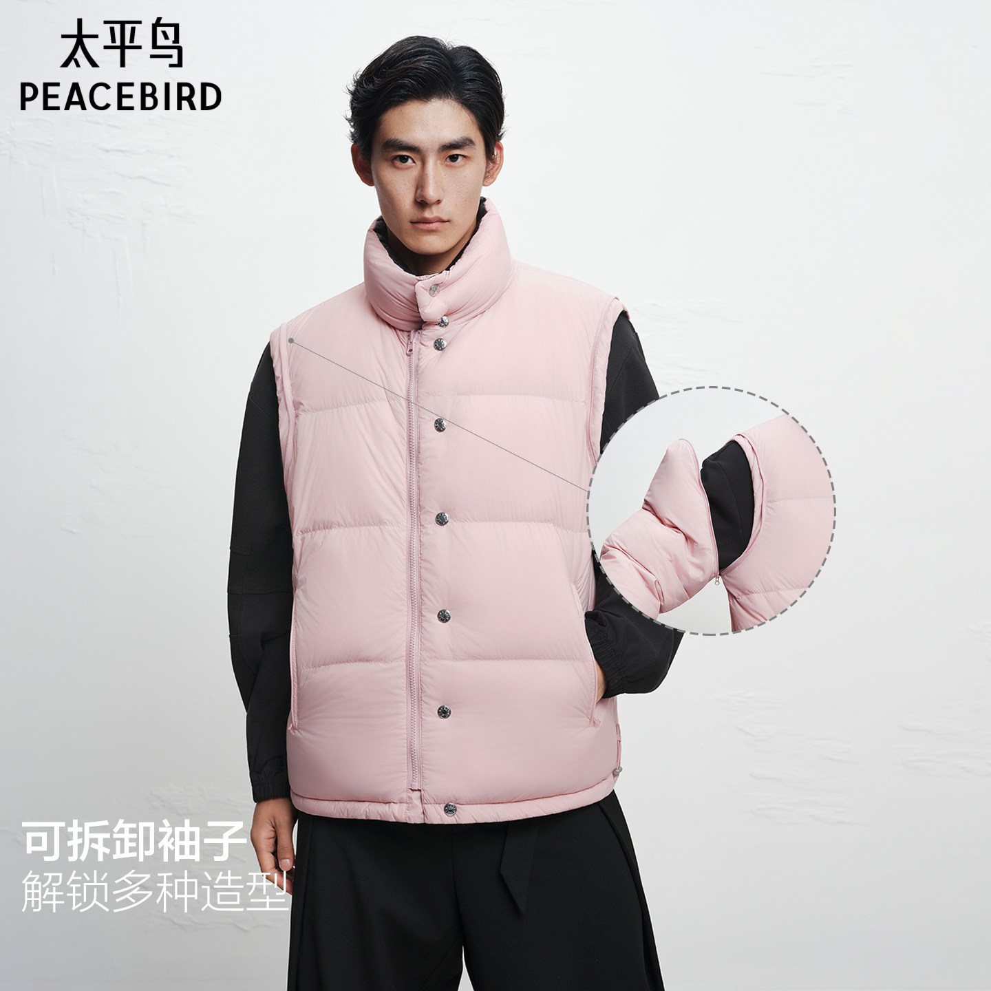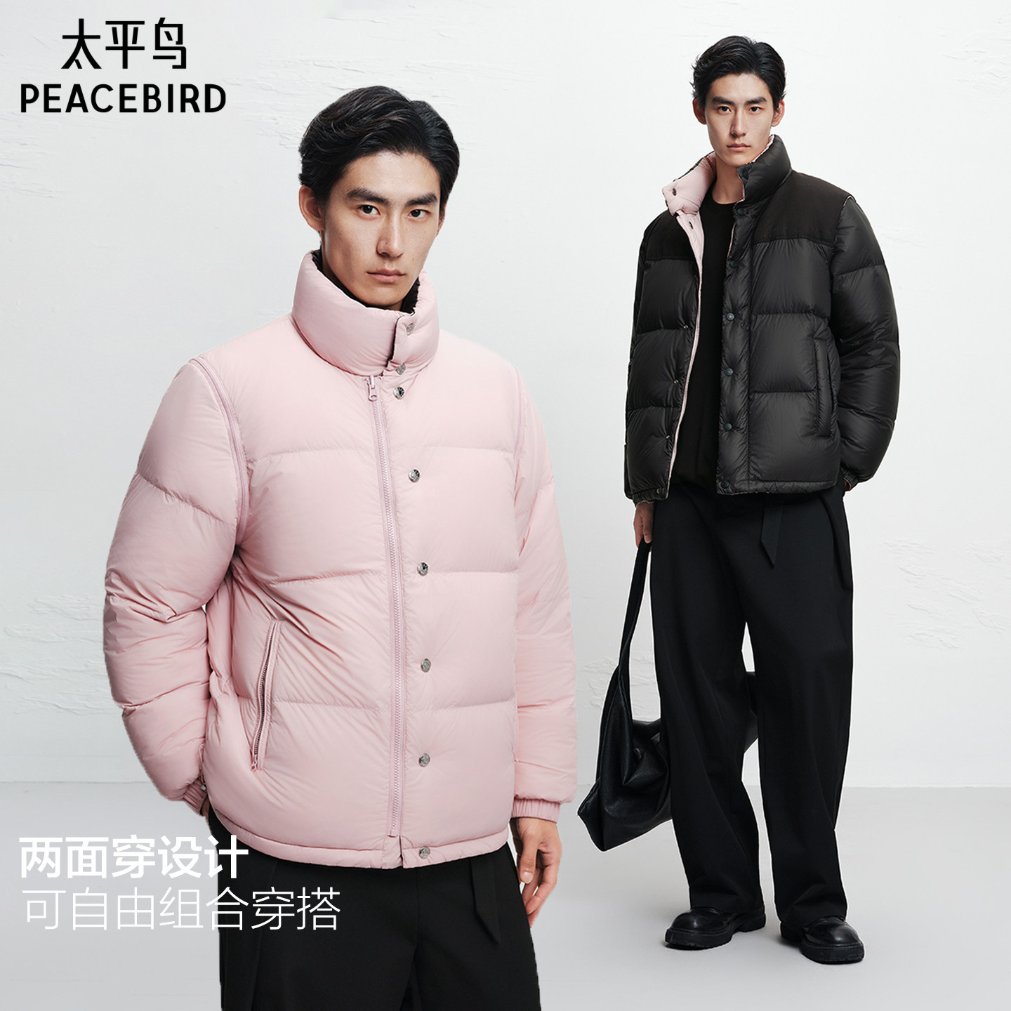 【商场同款】太平鸟男装双面穿立领羽绒服冬面包服外套B1ACF4448