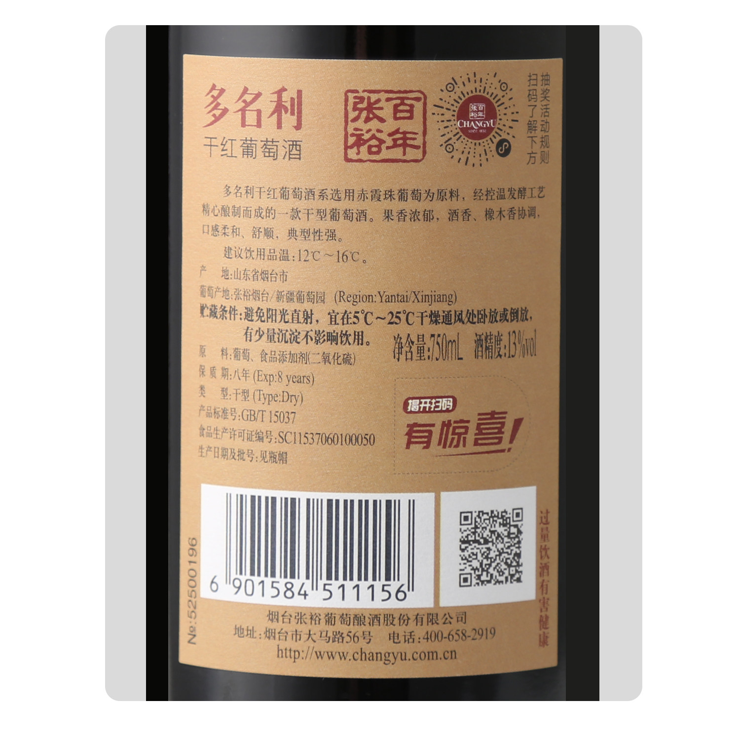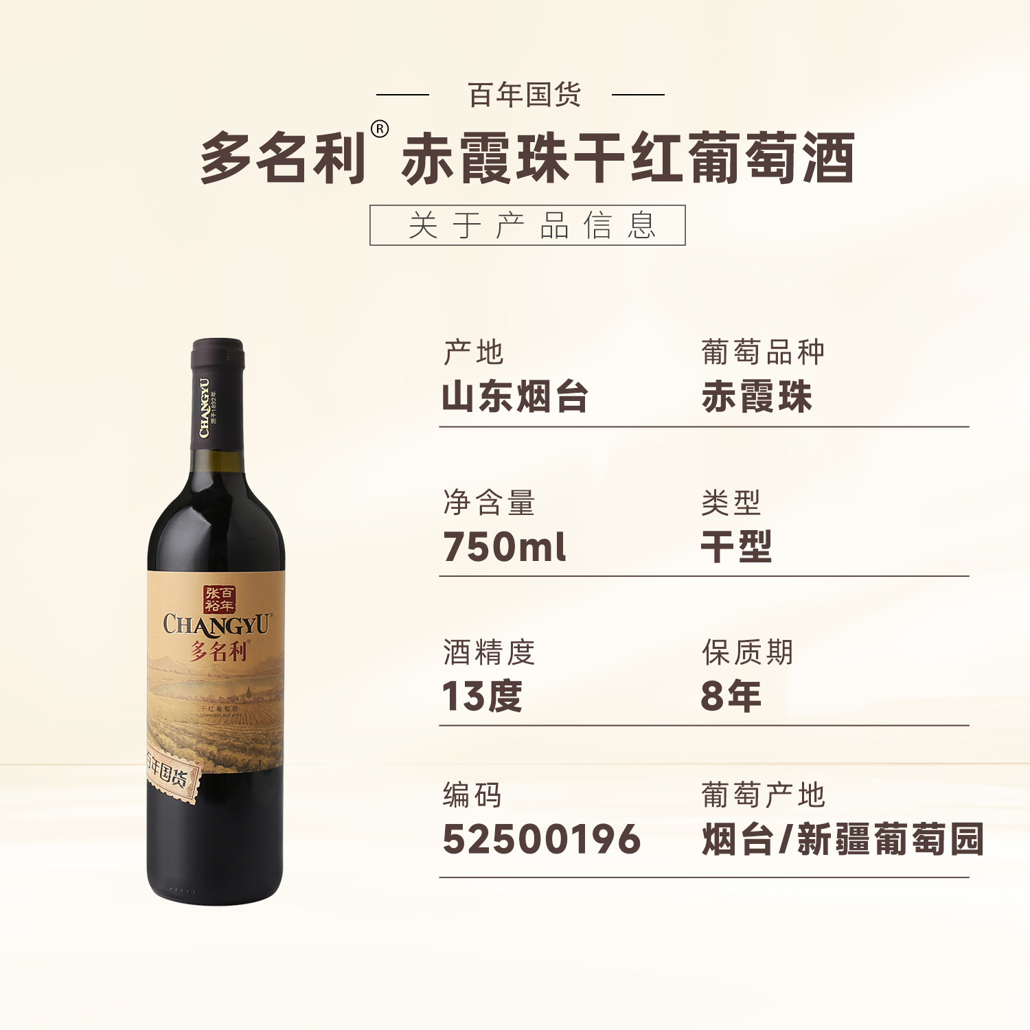 张裕官方百年国货赤霞珠红酒整箱6瓶干红葡萄酒13度橡木香协调