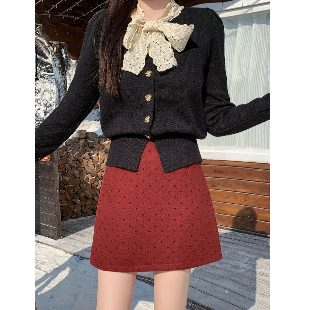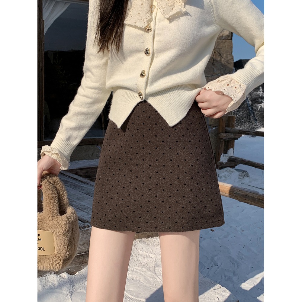 小吉家大码女装秋冬新款加厚高腰显瘦波点短裙百搭a字裙子半身裙