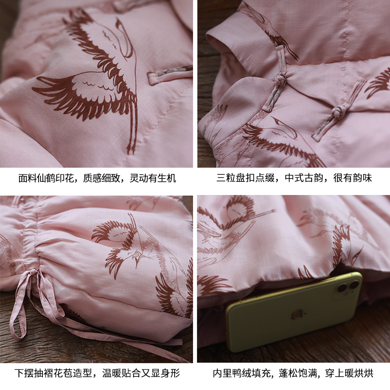 【鹊踏枝】复古中式盘扣保暖羽绒服女2024年冬季短款印花加厚外套