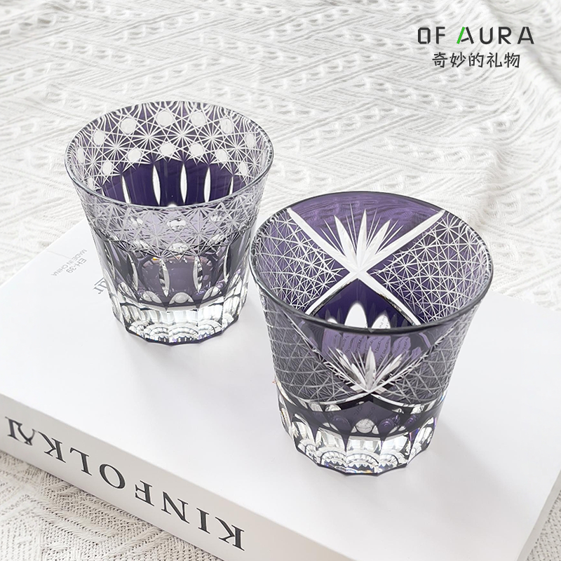 浪漫紫江户切子威士忌酒杯高档玻璃情侣对杯结婚乔迁礼物