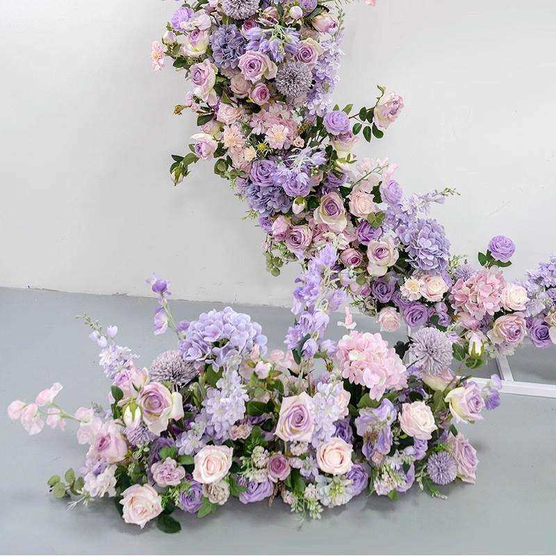 婚礼装饰背景月亮花艺套装欧式紫色直播背景橱窗装饰仿真假花艺