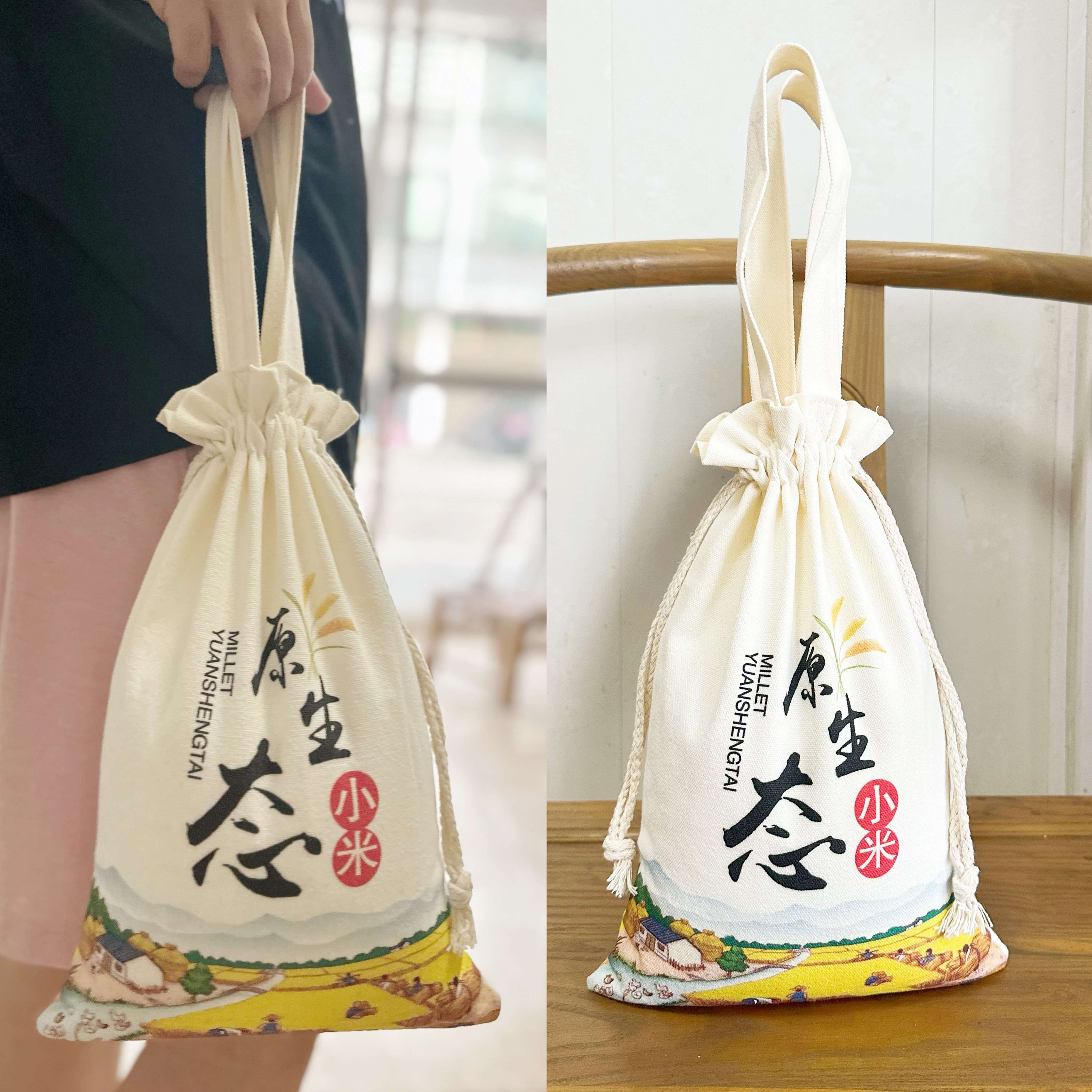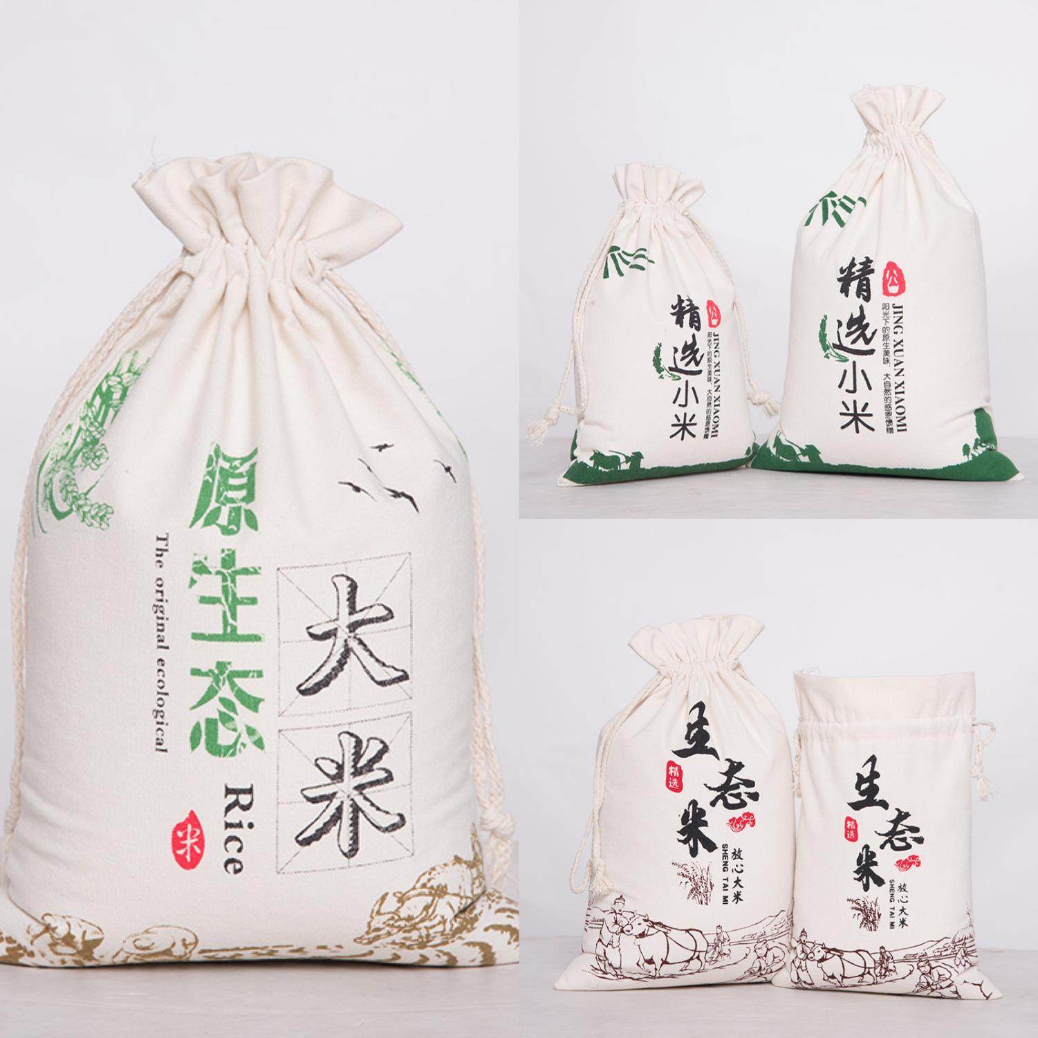 现货束口袋定制印帆布收纳抽拉绳收口袋小布袋手提面粉米袋订定做