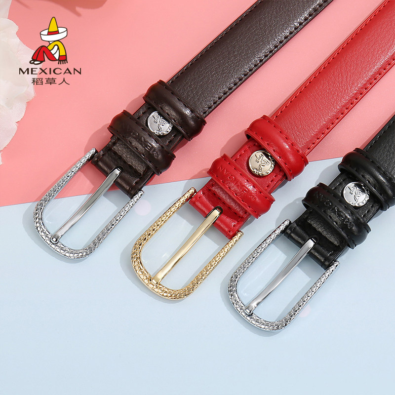 稻草人真皮腰带女新款纯女士针扣式皮带韩版休闲牛皮连衣裙裤腰带