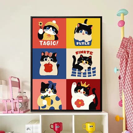 可爱猫咪diy数字油画ins装饰画