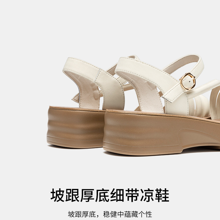 奥康 女鞋2025夏季凉鞋时尚一字带小坡跟露趾增高百搭日常凉拖