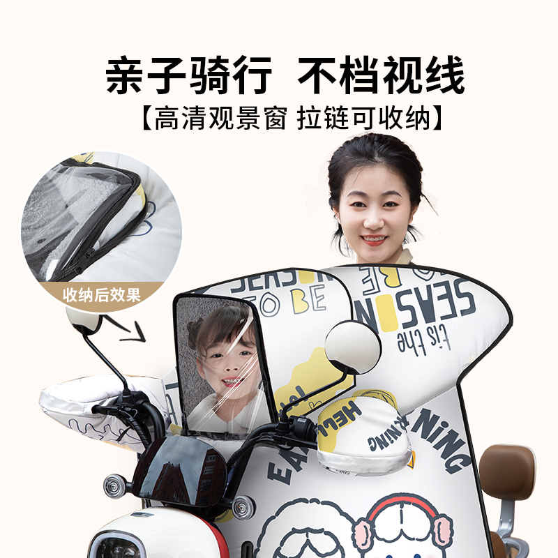 电动车挡风被开叉带小孩冬季亲子款电瓶四季通用儿童防水加绒加厚